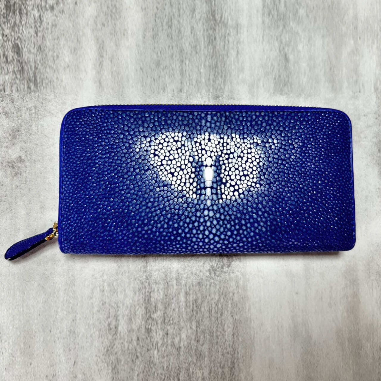 【希少品】 スティングレイ 長財布 選べる3色< ブラック ブルー グリーン > プレゼント にも おすすめ !高級感たっぷり ガルーシャ エイ革 本革 財布 革財布 ラウンドファスナー ハンドメイド ギフト 誕生日 クリスマス プレゼント 女性 男性 [ 送料無料 ] | whitestartokyo